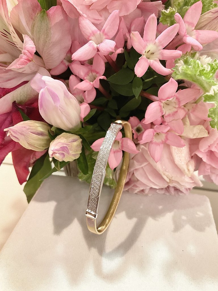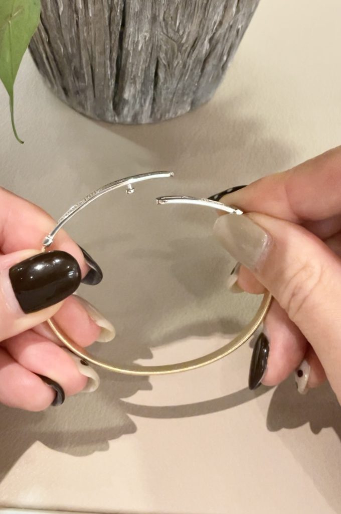 最近はブレスレット、特にバングルタイプが人気です。バングルは着脱が簡単というのもいいですよね。こちらのMarco Bicegoのバングルは、ダイヤの部分が隠れたクラスプになっていてデザインもすっきり見えてとてもスタイリッシュ。幅も程よい太さで嫌味なく普段使いできます。ぜひお店にご覧になりにいらしてください。
