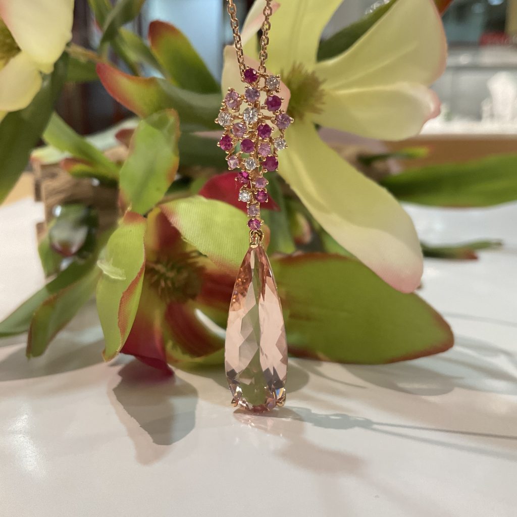 ここのところ一気に春めいてまいりました。最近入荷のモルガナイトのネックレスを見て、“春らしいライトピンクの色が可愛いな〜”と思い、写真を撮りました。こちらのモルガナイトは8,14ctあります。トップにはピンクサファイアとダイヤモンドがキラキラ、、、とても合う色合いです。ピンクゴールドのチェーンも相まって本当にラブリーなネックレスです。ぜひご覧になりにいらしてください。