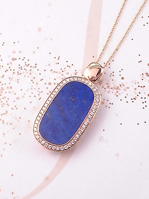 K18ピンクゴールドラピス4,20ctダイヤモンド0,26ctネックレス ¥528,000.-